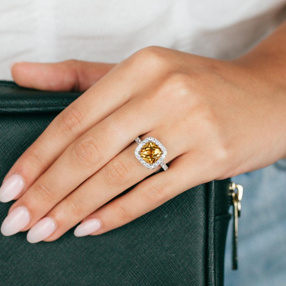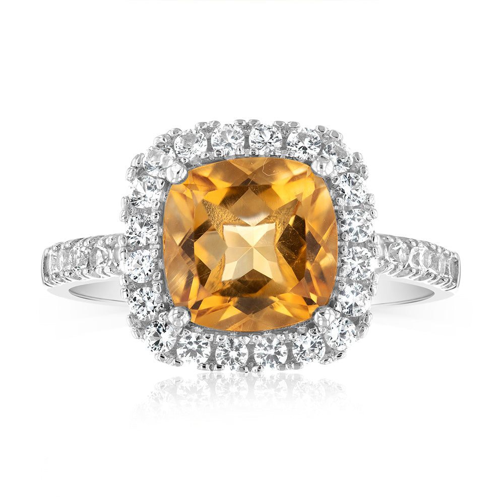 Natural Citrine & Created White Sapphire Ring Sterling Silver