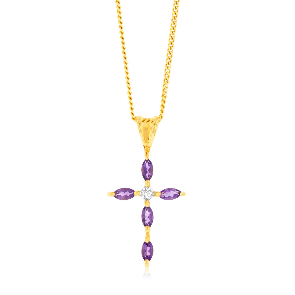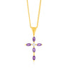 Natural Marquise Cut Amethyst Cross Diamond Pendant in 9ct Yellow Gold
