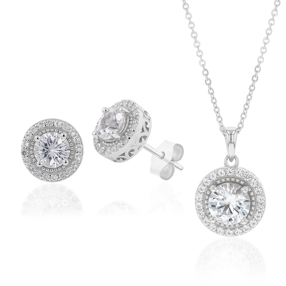 Natural White Sapphire Pendant and Earring Set on Chain in Sterling Silver
