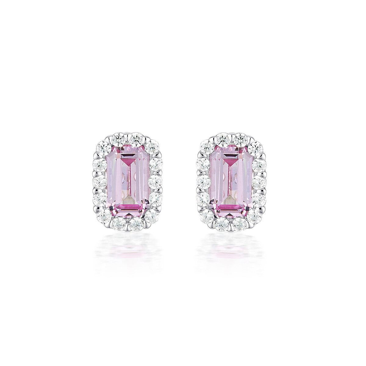 Rhodium-plated 925 sterling silver and pink sapphire CZ.