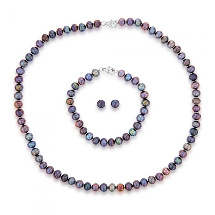 Peacock Freshwater Pearl Boxed Set with Sterling Silver Clasp