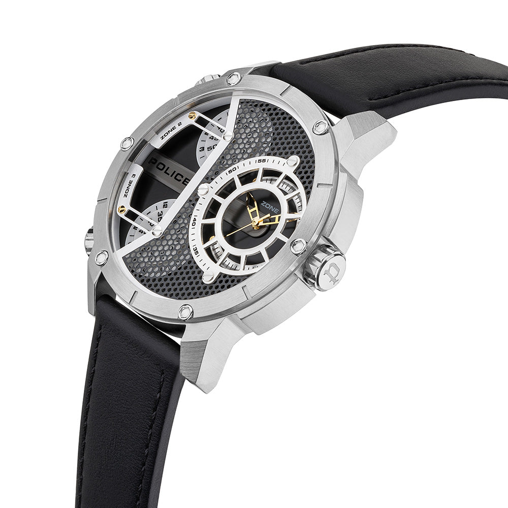 • Stainless Steel Case • Black Leather Band • Multifunction Dial • 50mm Case • 50 Metres Water Resistant