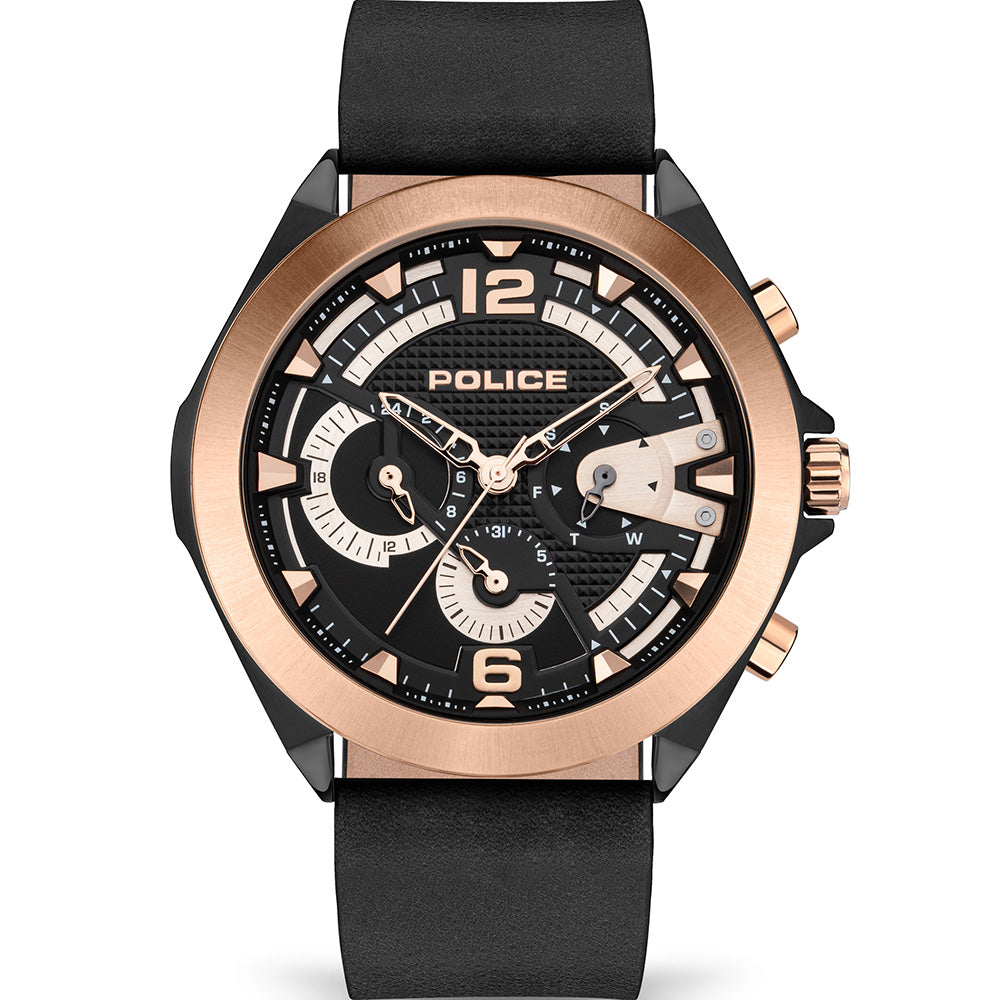 •  46mm Case Size   •  Black Leather Band   •  Multifunction Dial   •  50 Metres Water Resistant