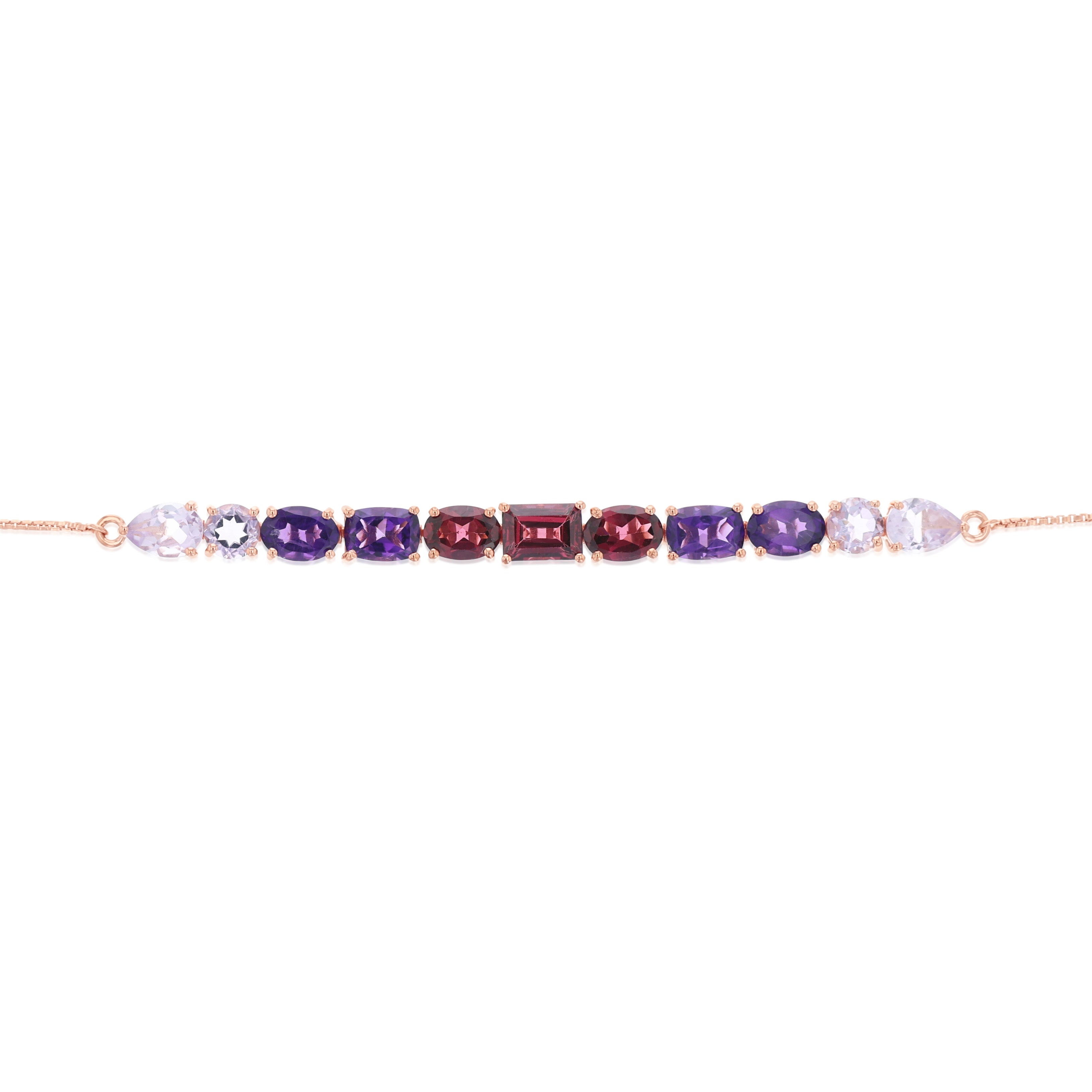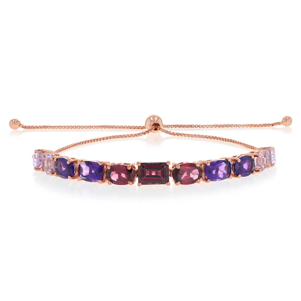 Rhodolite and Pink Amethyst Bolo Bracelet in Rose Gold Plated Sterling Sterling