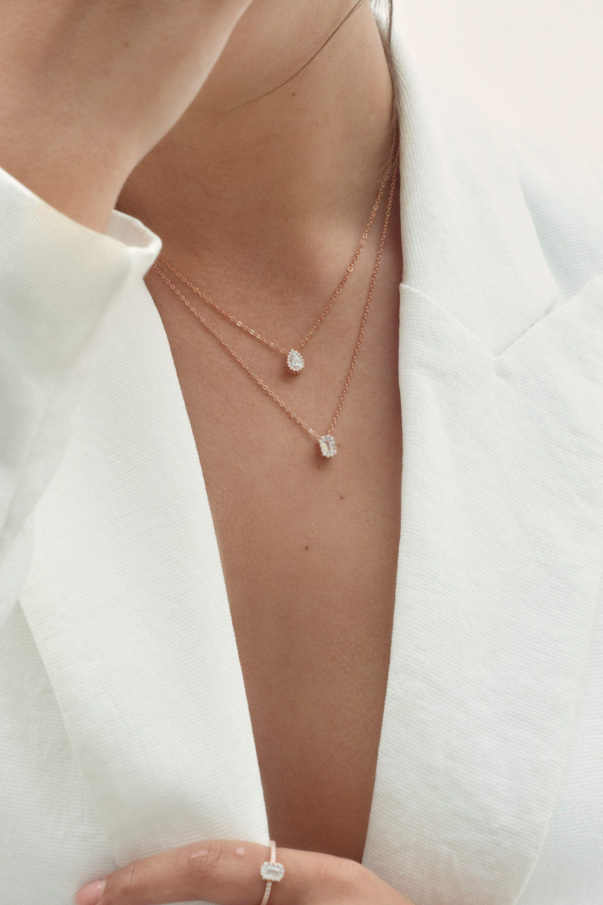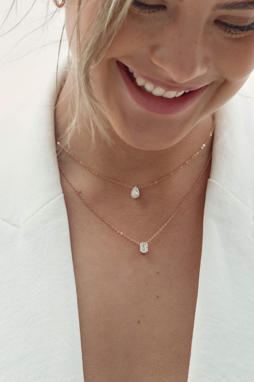 Classic meets modern glam in the Monaco pendant! The Monaco pendant features a perfectly cut pear cubic zirconia centre stone with a delicate halo of tiny sparkling cubic zirconia around its edges. The Monaco pendant will glam up any outfit and is perfect for your everyday wear or next special occasion.