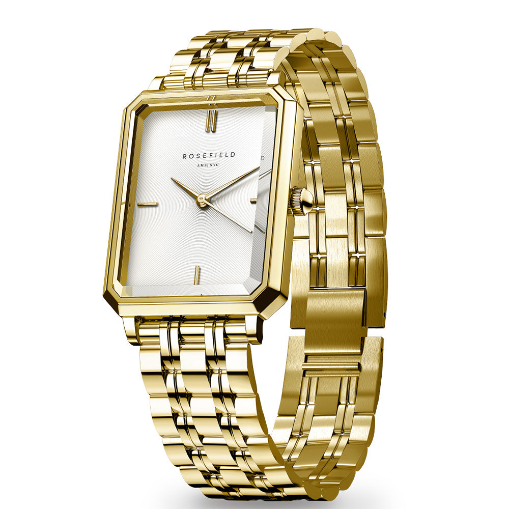 - 19.5x24mm Case Size - Brass Gold Case - 23K Gold-Plated Stainless-Steel Bracelet - Octagon Case - 30 Meters Water Resistant