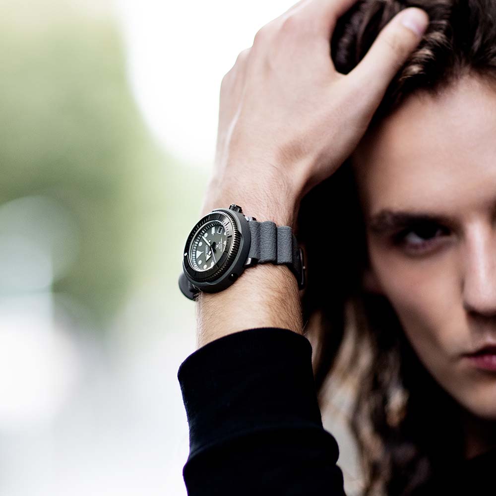 • Inspired by the original 1975 Seiko diver's, these timepieces feature the same iconic outer protector, in a more compact design perfect for urban living. • Perfect for sports lovers and adventure seekers whether in the water, in the sky or land. • Three Dimensional Bezel • Leather Textured Silicone Strap • Screw Down Crown • Lumibrite hands & Markers • Operating for approx. 10 months (when fully charged) • Overcharge prevention function • Quick-start function