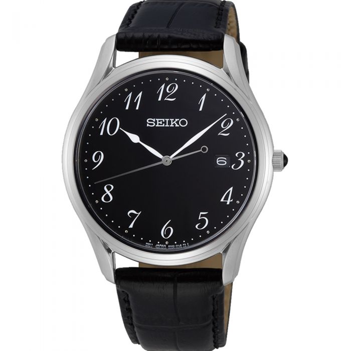• Black Dial • Japanese Movement • Case Size 37.4mm • 50 Meters Water Resistant • Black Leather Band