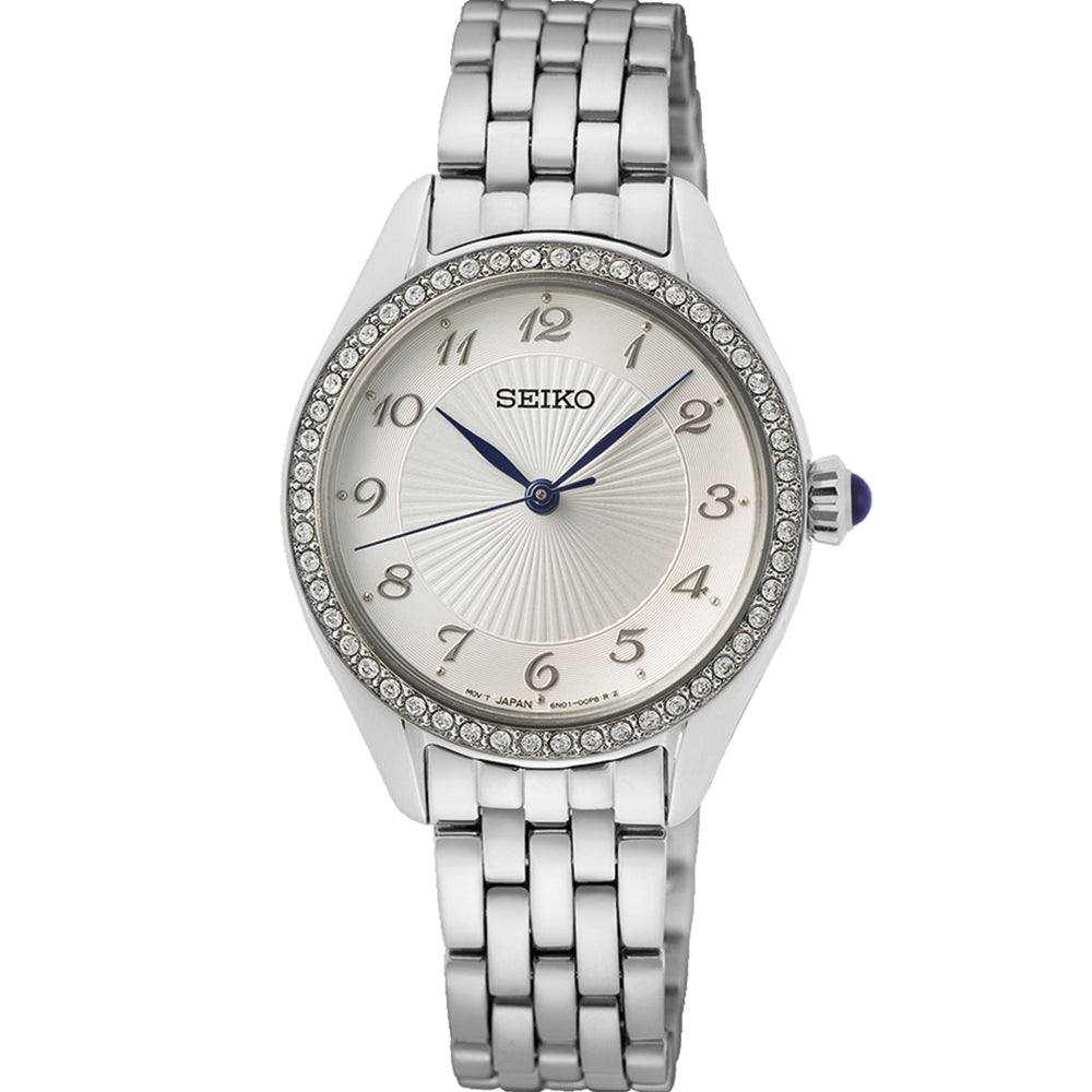 Seiko SUR479P Stone Set Silver Tone Womens Watch