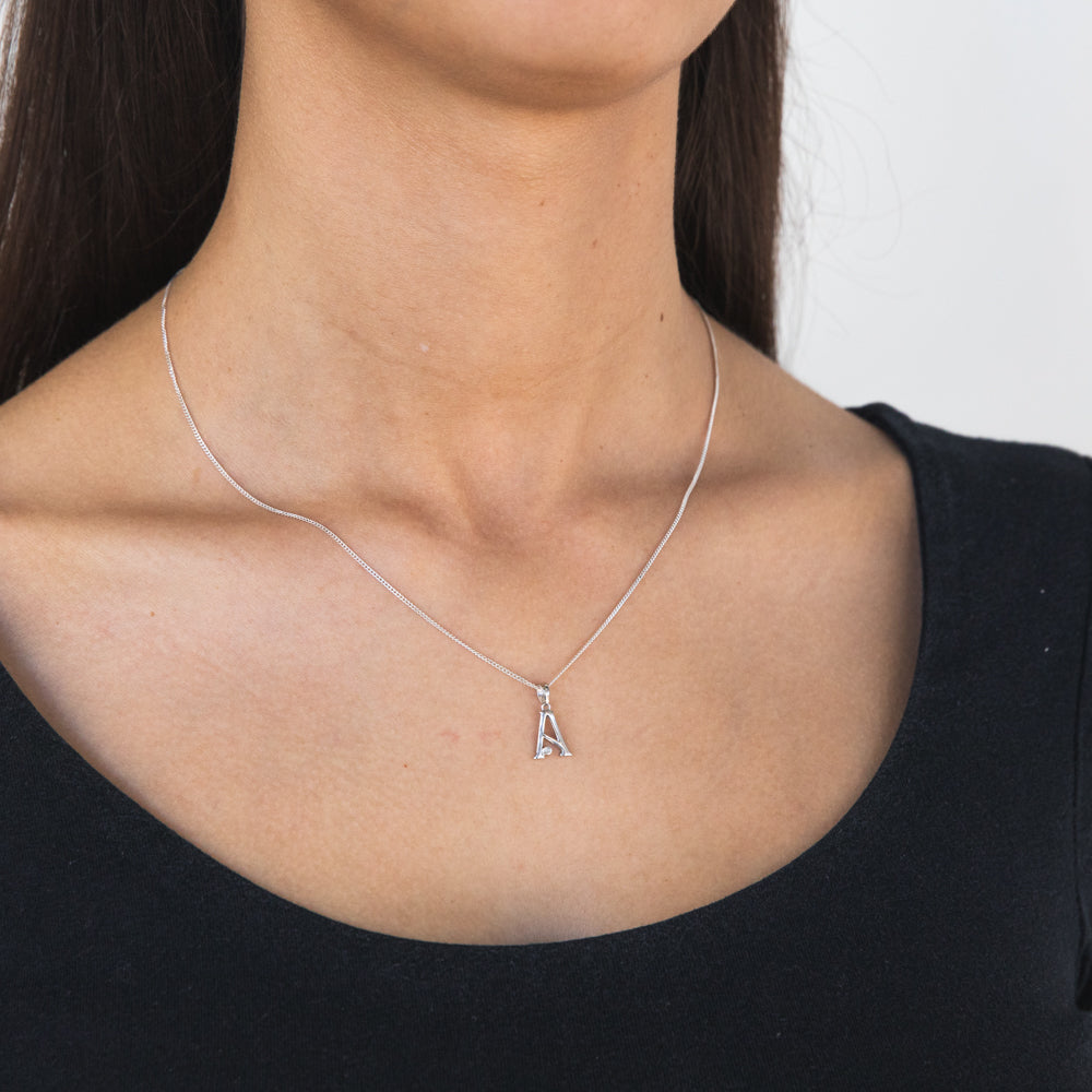 Suitable for every occasion, this initial A pendant is enough to steal the spotlight. Due to its captivating versatility, it can be worn with any outfit and enhance the fashion quotient of any attire. The blend of silver and diamond gives them a subtle and not too flashy appearance which makes it a perfect pick for everyday wear. Features: • The A pendant is a distinct initial pendant that has a simple yet eye-catching look to go with your favourite attire