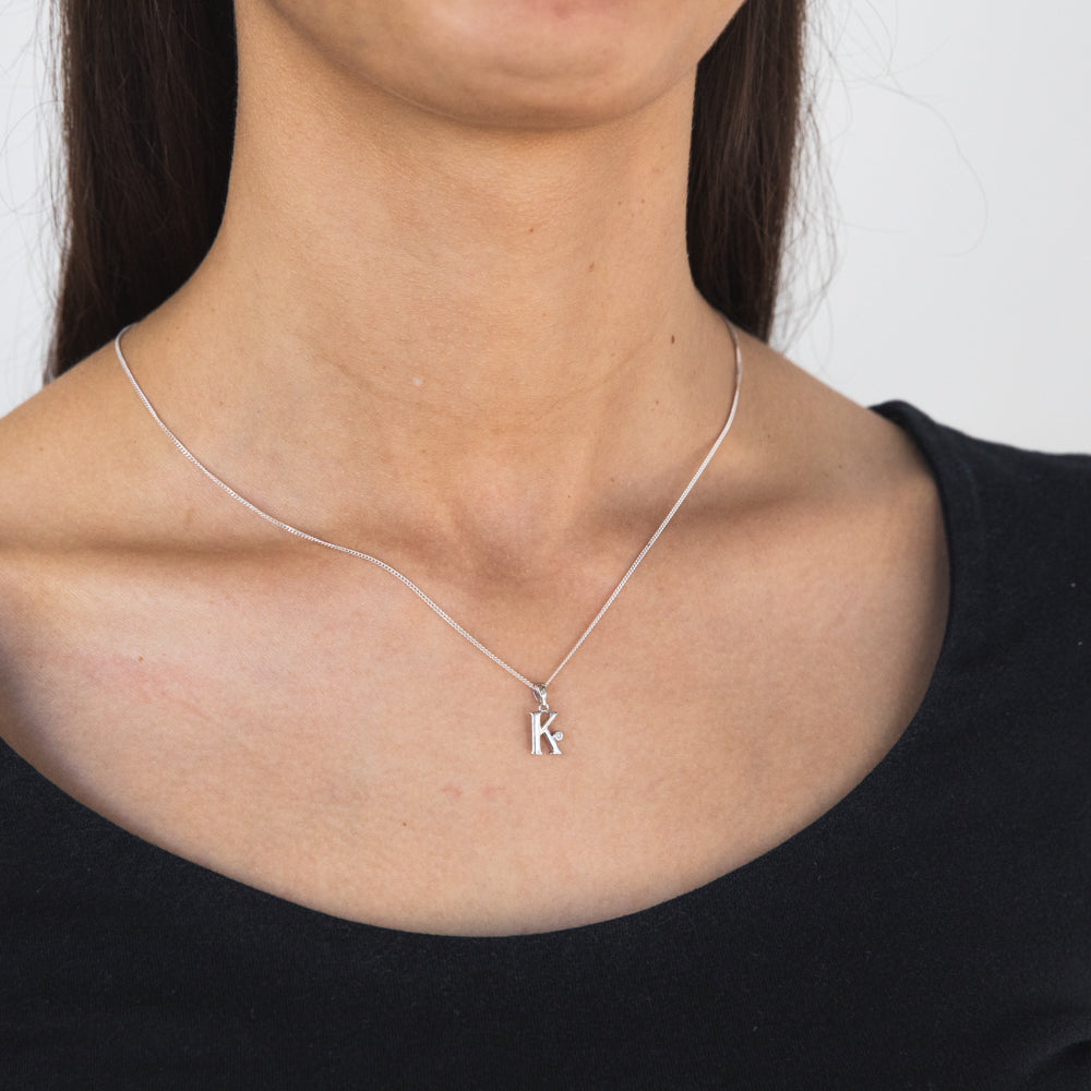 Silver Pendant Initial K set with Diamond