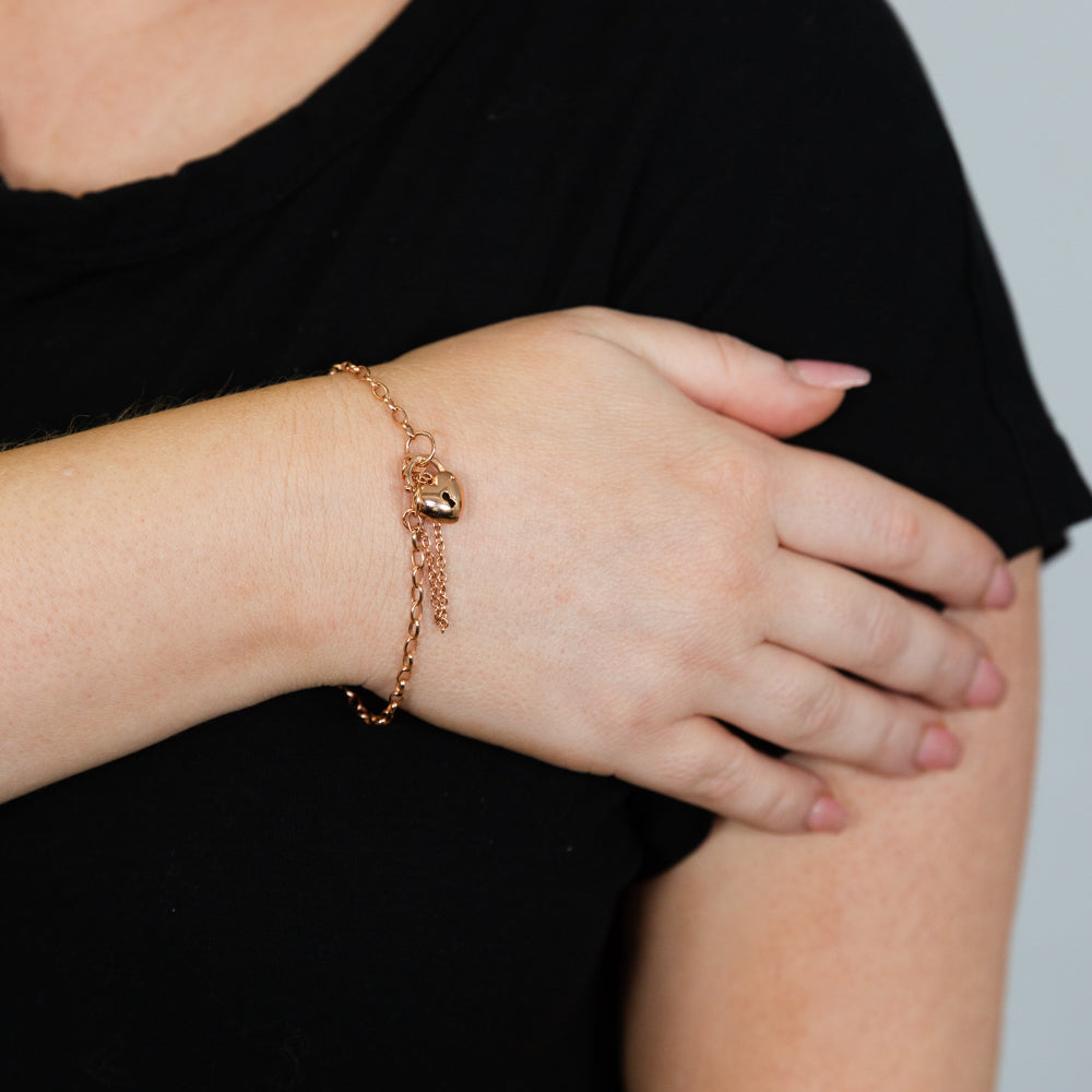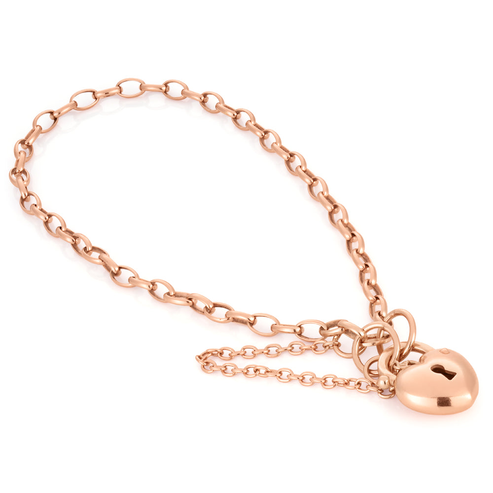 Silverfilled 9ct Yellow Gold Heart Padlock 19cm Bracelet