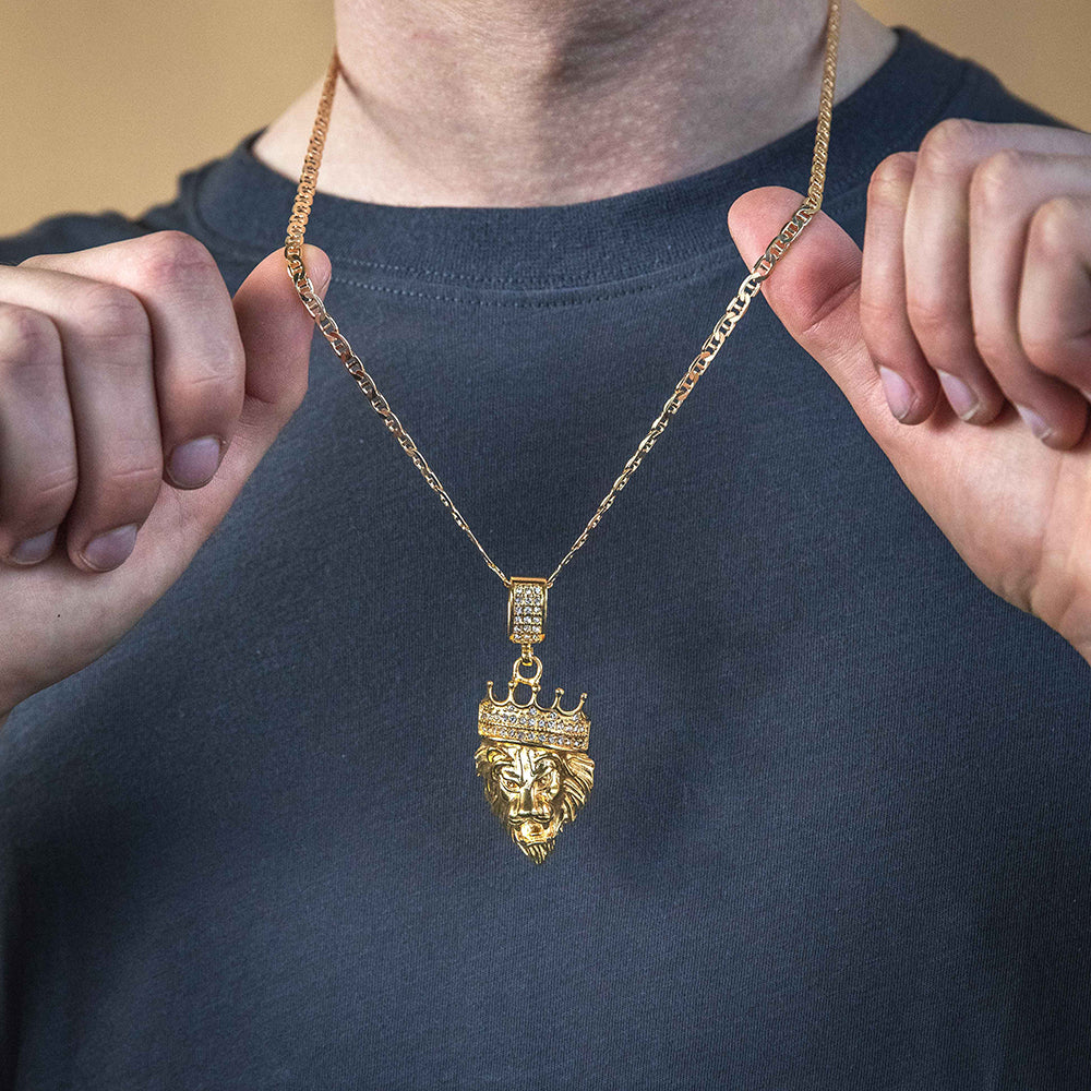 Stainless Steel and Gold Plated Crystal Lion Head with Crown Pendant