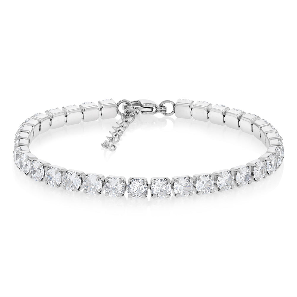 Stainless Steel Cubic Zirconia Tennis 17+3cm Bracelet