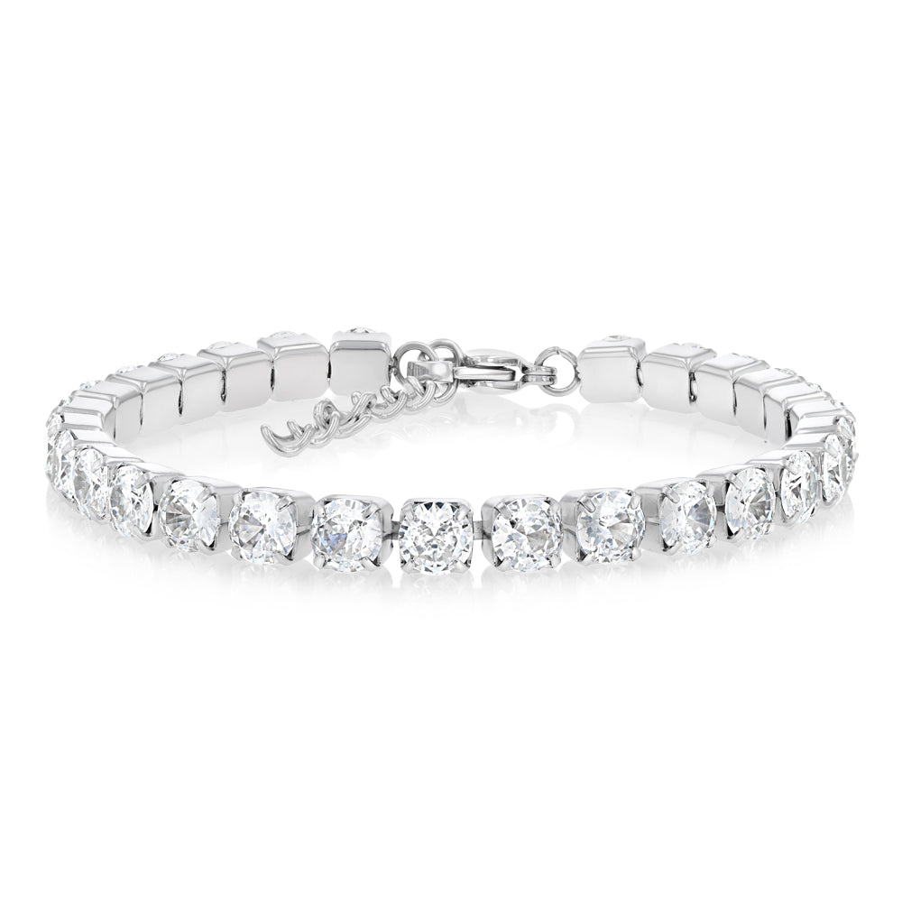 Stainless Steel Cubic Zirconia Tennis 17+3cm Bracelet