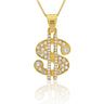 Stainless Steel Gold Plated Crystal Set Dollar Sign Pendant