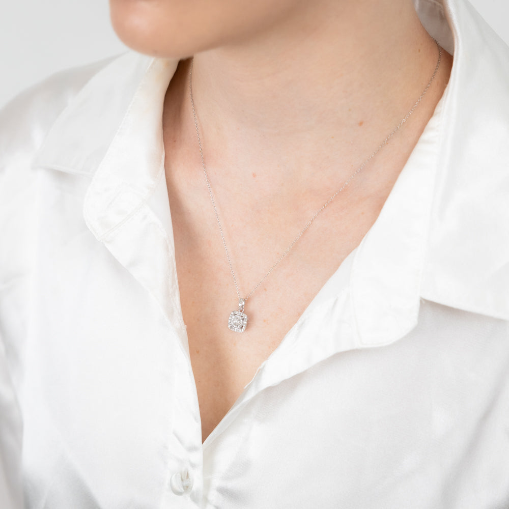Sterling Silver 1/5 Carat Natural Diamond Cushion Shaped Pendant on 46cm Chain