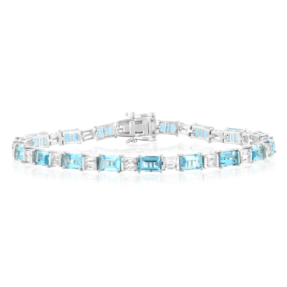 Sterling Silver 14.5 Carat Natural Blue & White Topaz Bracelet 18CM