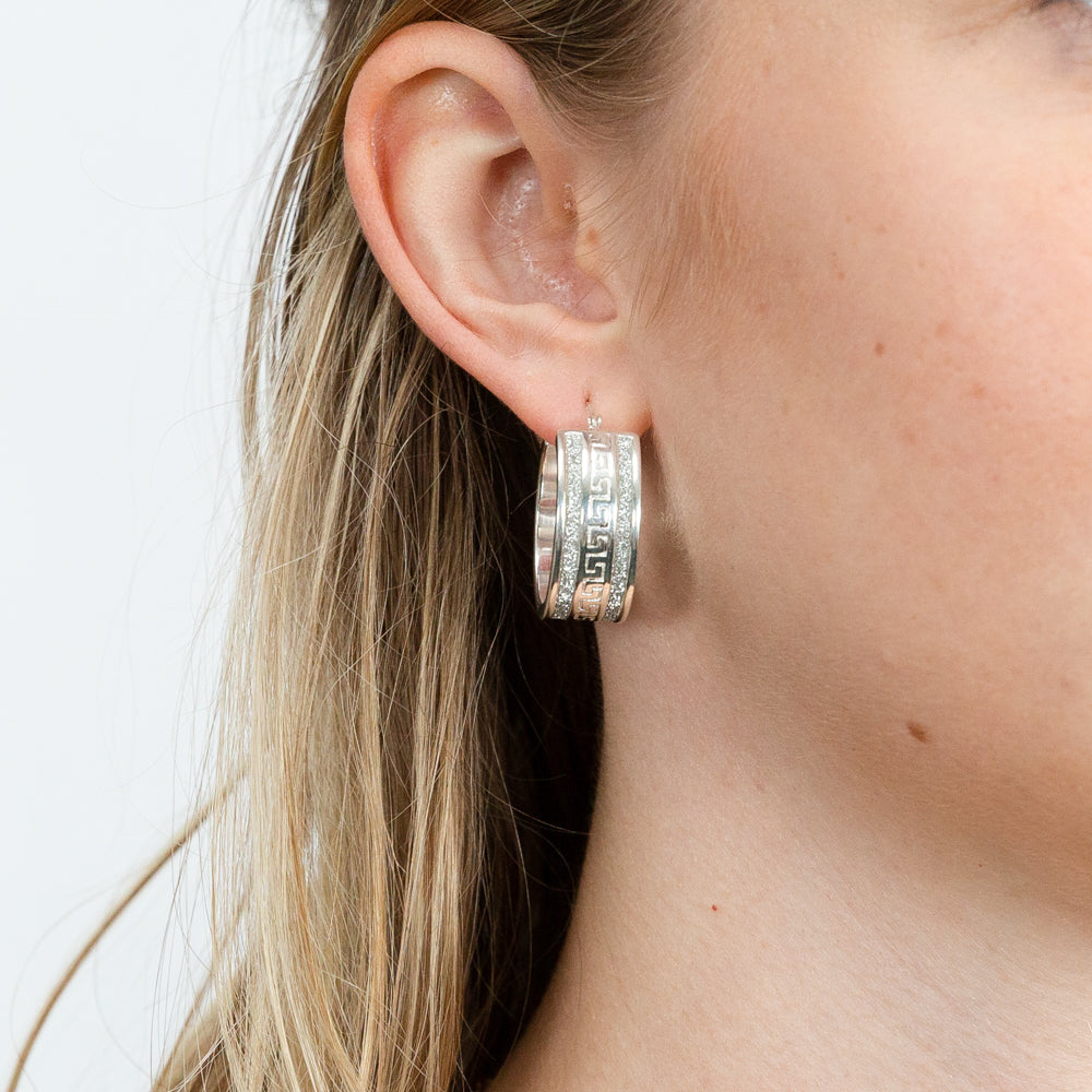 Sterling Silver 20mm Stardust Greek Key Hoops