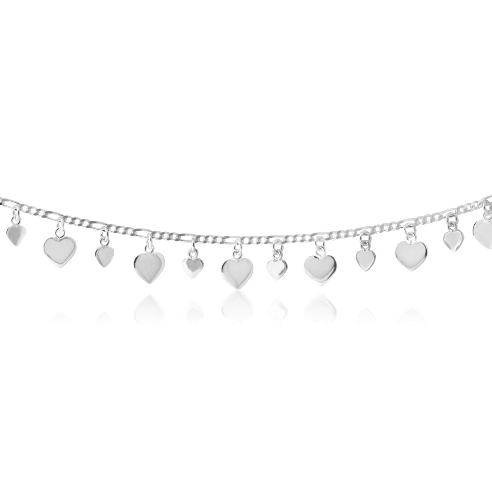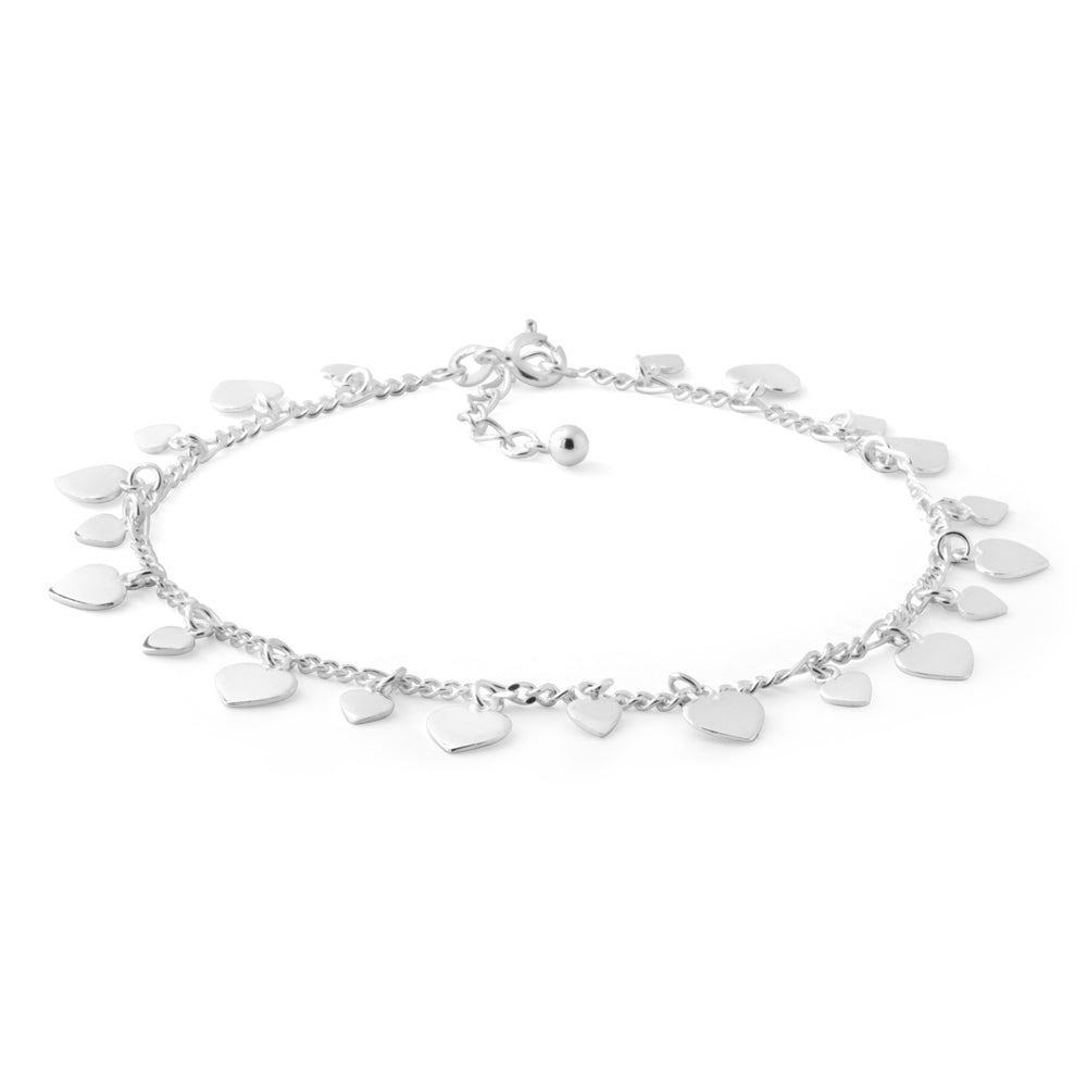 Sterling Silver 25cm Multi Heart Charm Anklet