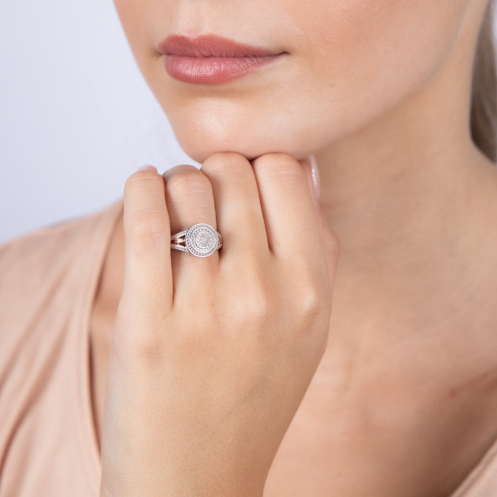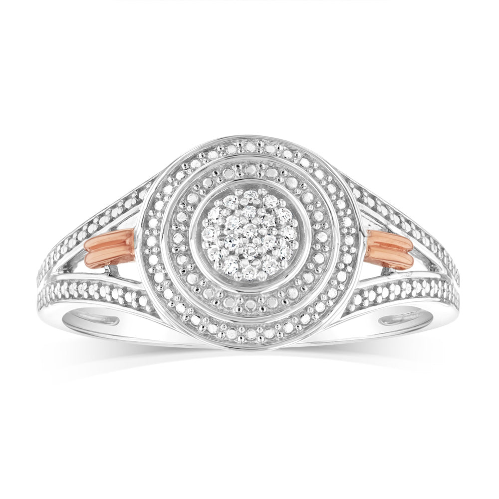 Sterling Silver & 9ct Yellow Gold Diamond Ring with 19 Brilliant Cut Diamonds