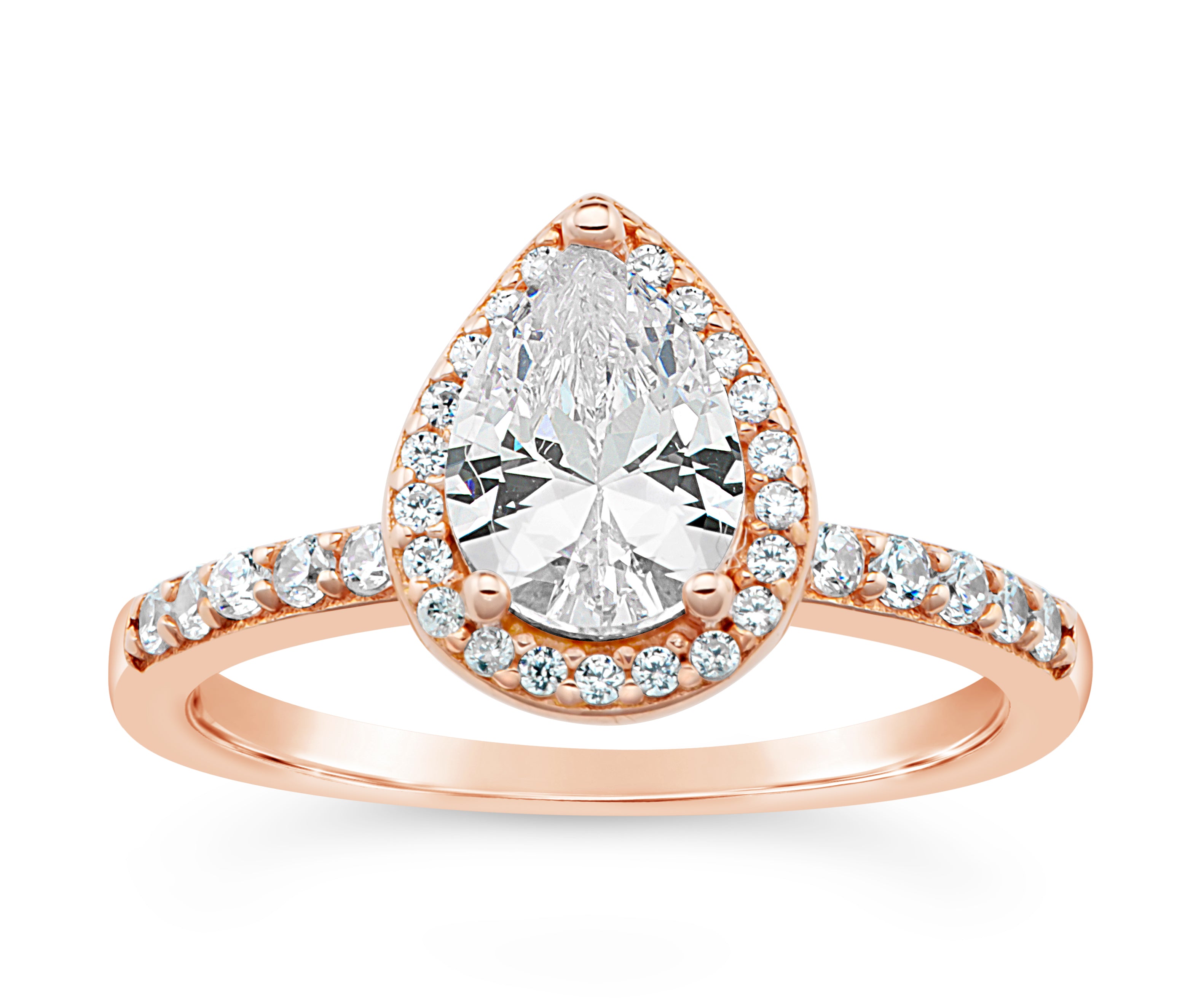 Sterling Silver and Rose Plated Zirconia High Rise Pear and Round Channel Set Ring