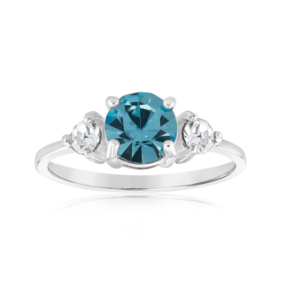 Sterling Silver Aqua Bohemica And White Crystal Ring