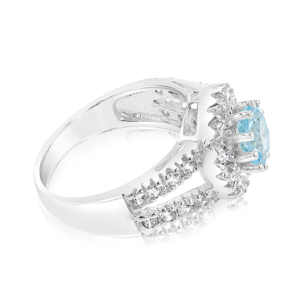 Sterling Silver Blue Topaz & Cubic Zirconia Fancy Ring