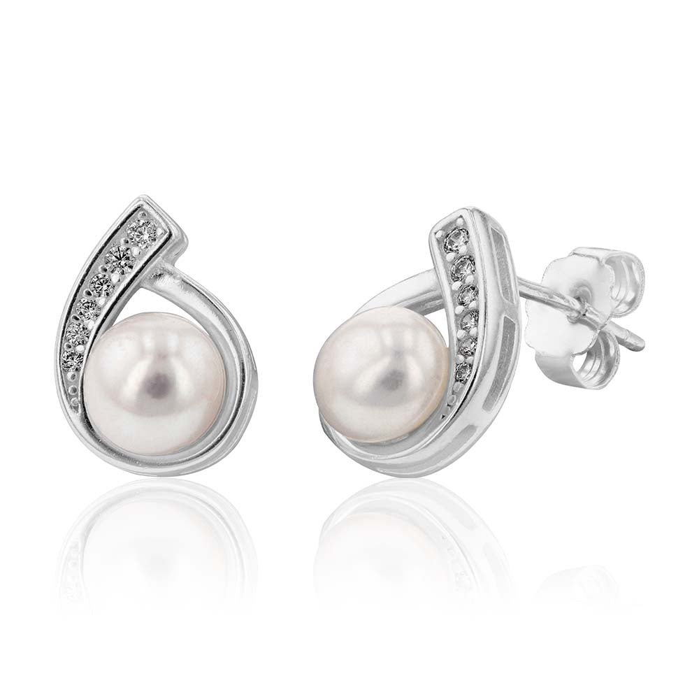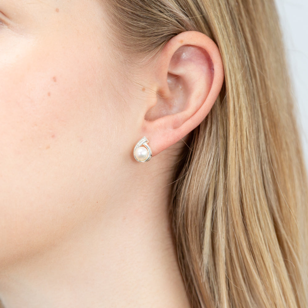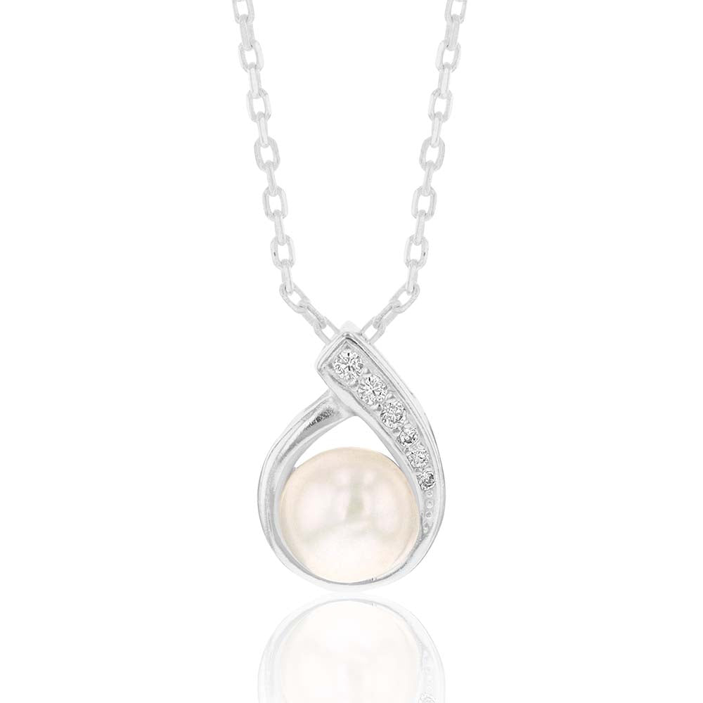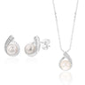 Sterling Silver Boxed Freshwater Pearl and Zirconia Set on Chain