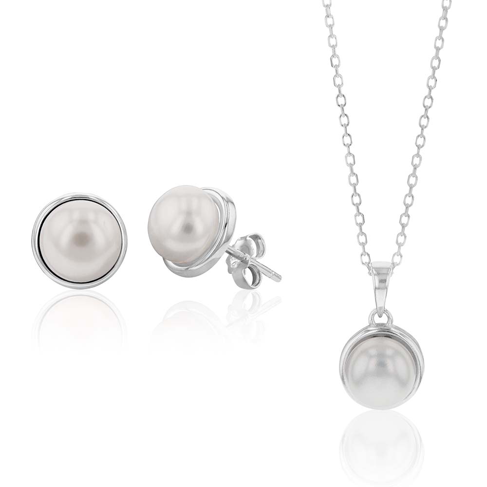 Sterling Silver Boxed Freshwater Pearl Pendant and Earring Set with 45cm Chain