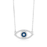 Sterling Silver Created Blue Sapphire And Zirconia Evil Eye Pendant On 45cm Chain