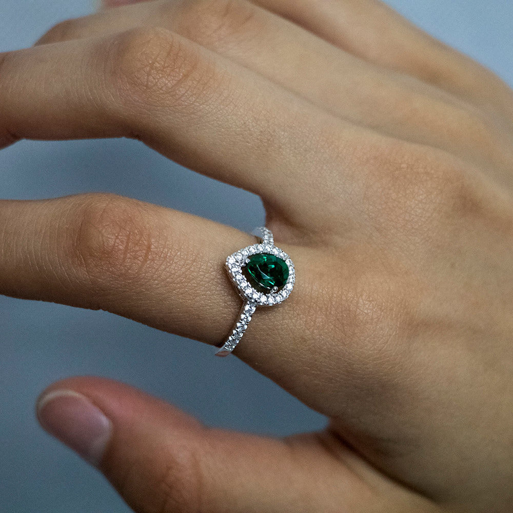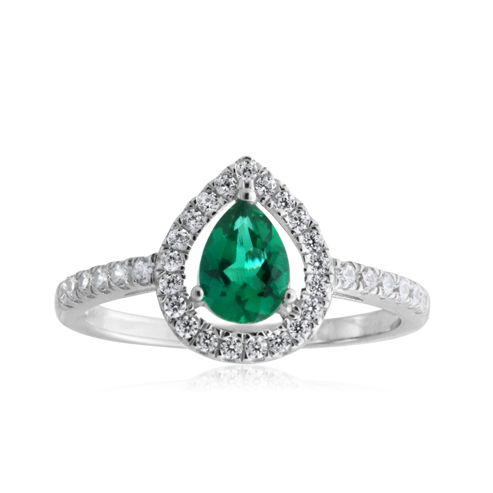 Sterling Silver Created Emerald and Zirconia Set Ring *Resize 1-2 Sizes Up*