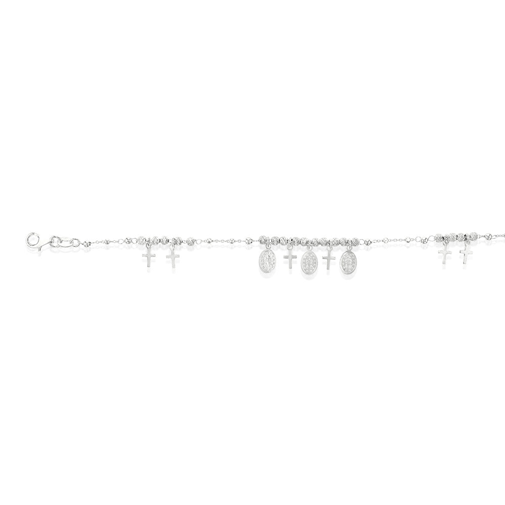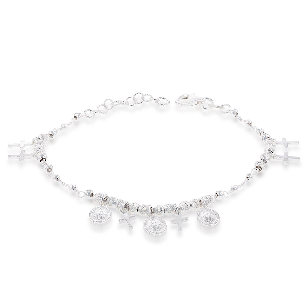 Sterling Silver Cross And Medallion Charm 19cm Bracelet