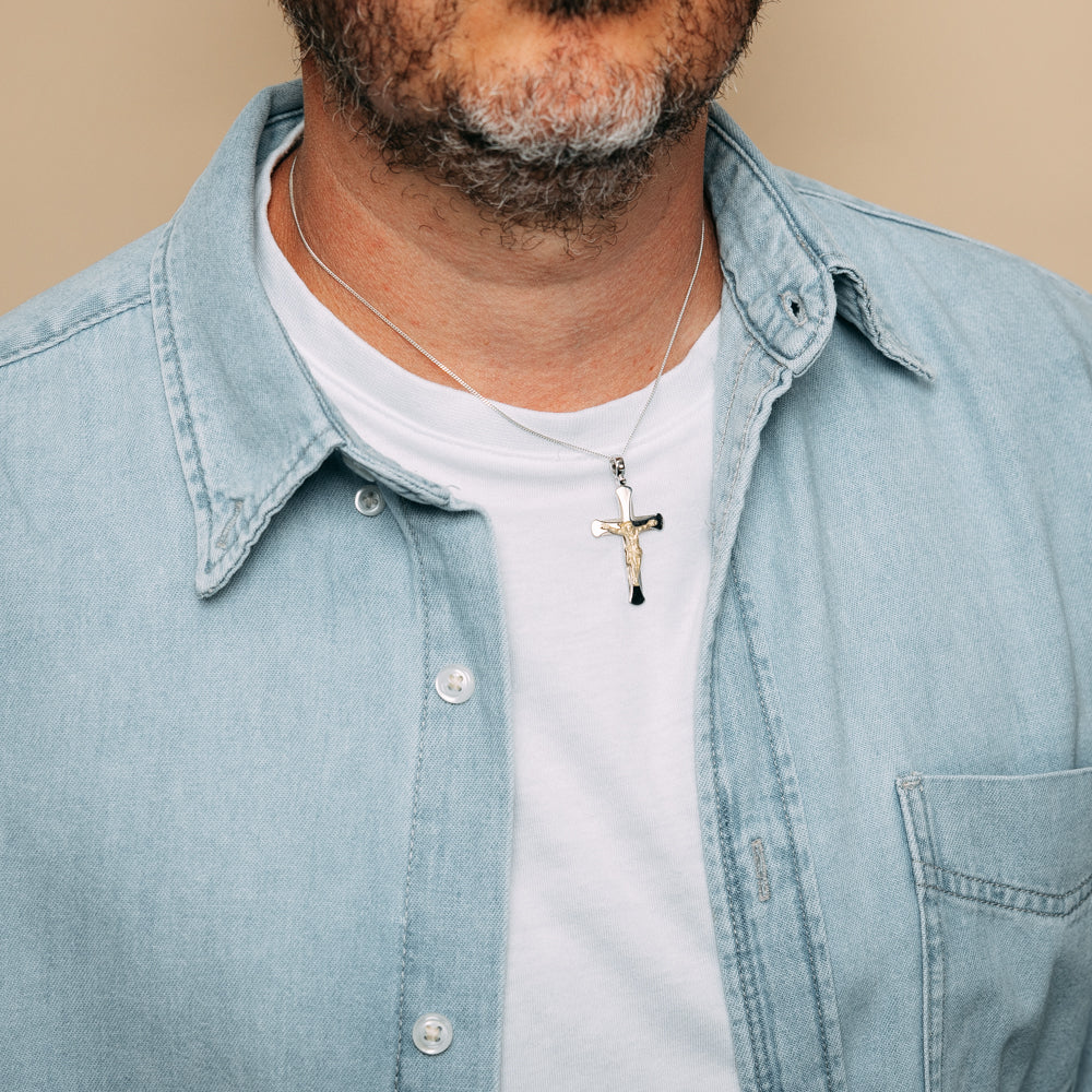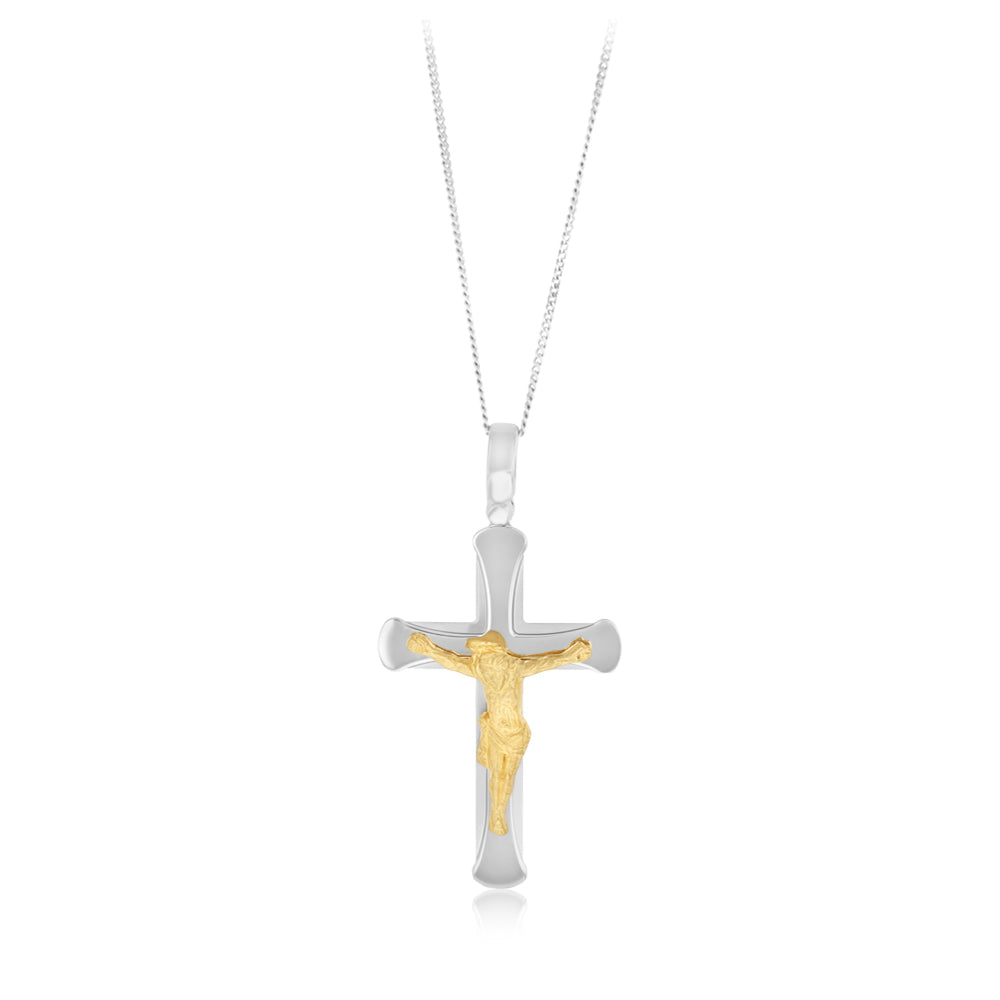 Sterling Silver Cross with 9ct Gold Jesus Crucifix Pendant