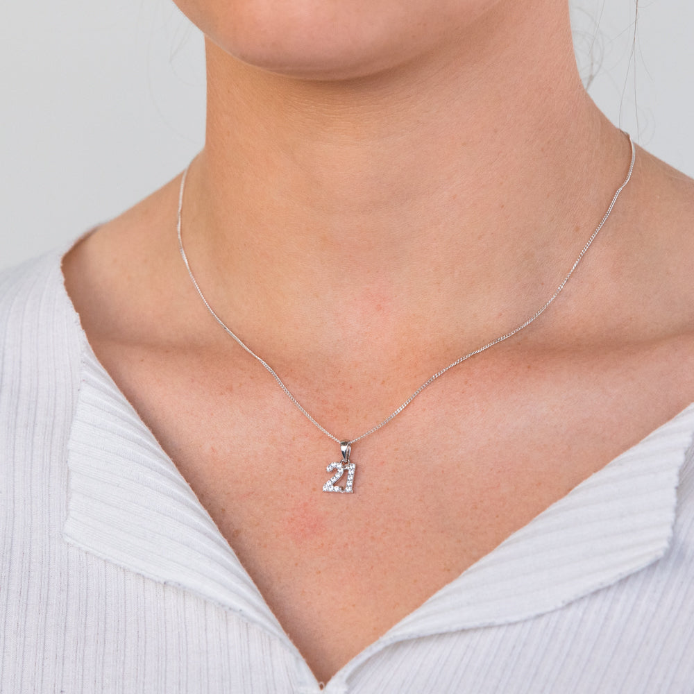 Sterling Silver Cubic Zirconia 9mm Number "21" Pendant