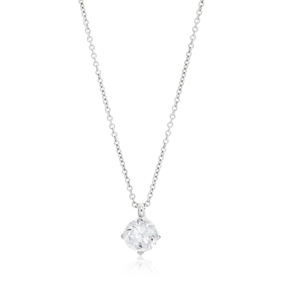 Sterling Silver Cubic Zirconia Claw Set Pendant With 40 + 5cm Chain