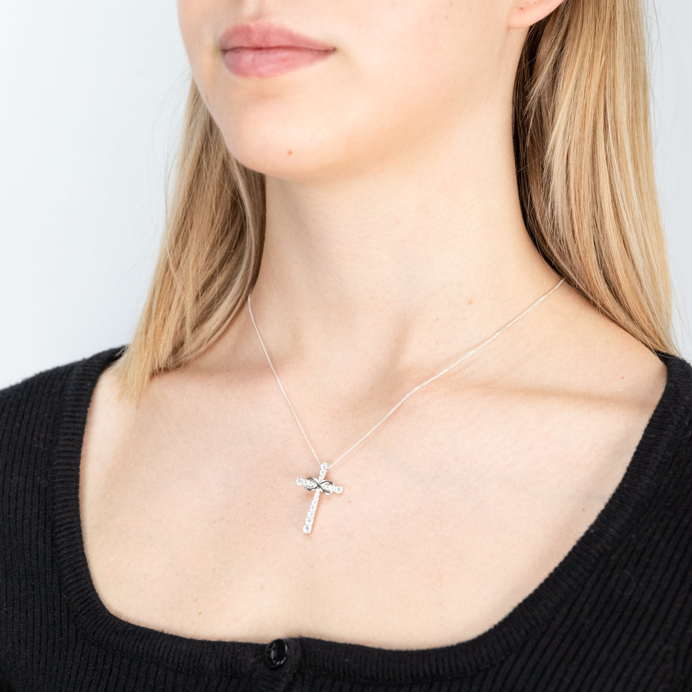 Sterling Silver Cubic Zirconia Cross & Infinity Pendant