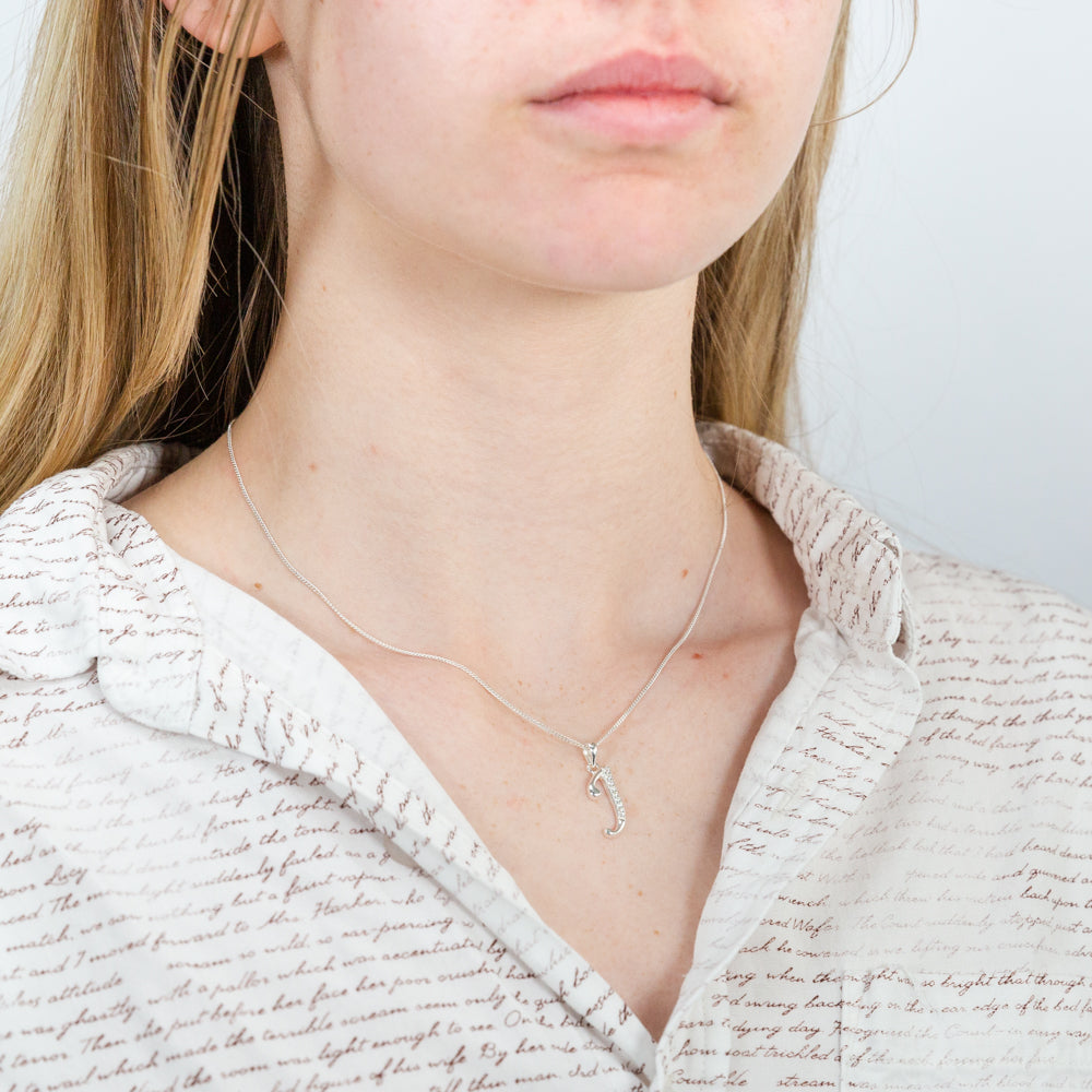 Sterling Silver Cubic Zirconia Cursive Initial "J" Pendant