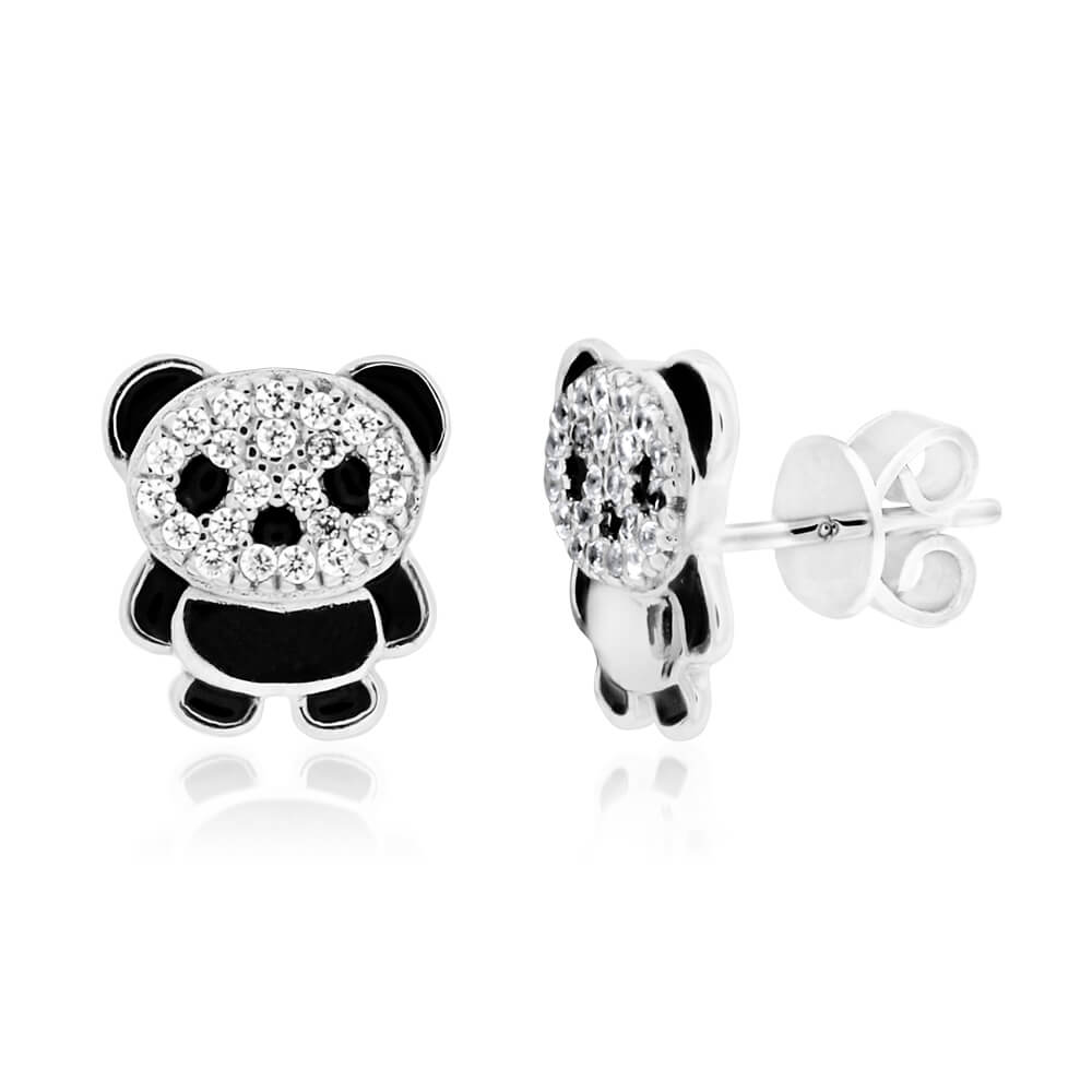 Sterling Silver Cubic Zirconia Fancy Panda Stud Earrings