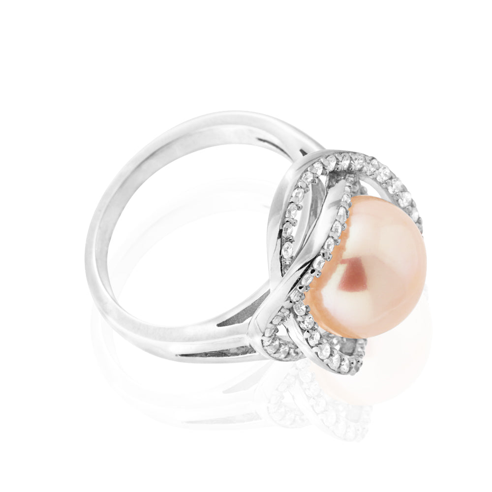 Sterling Silver Cubic Zirconia Freshwater Pearl Ring