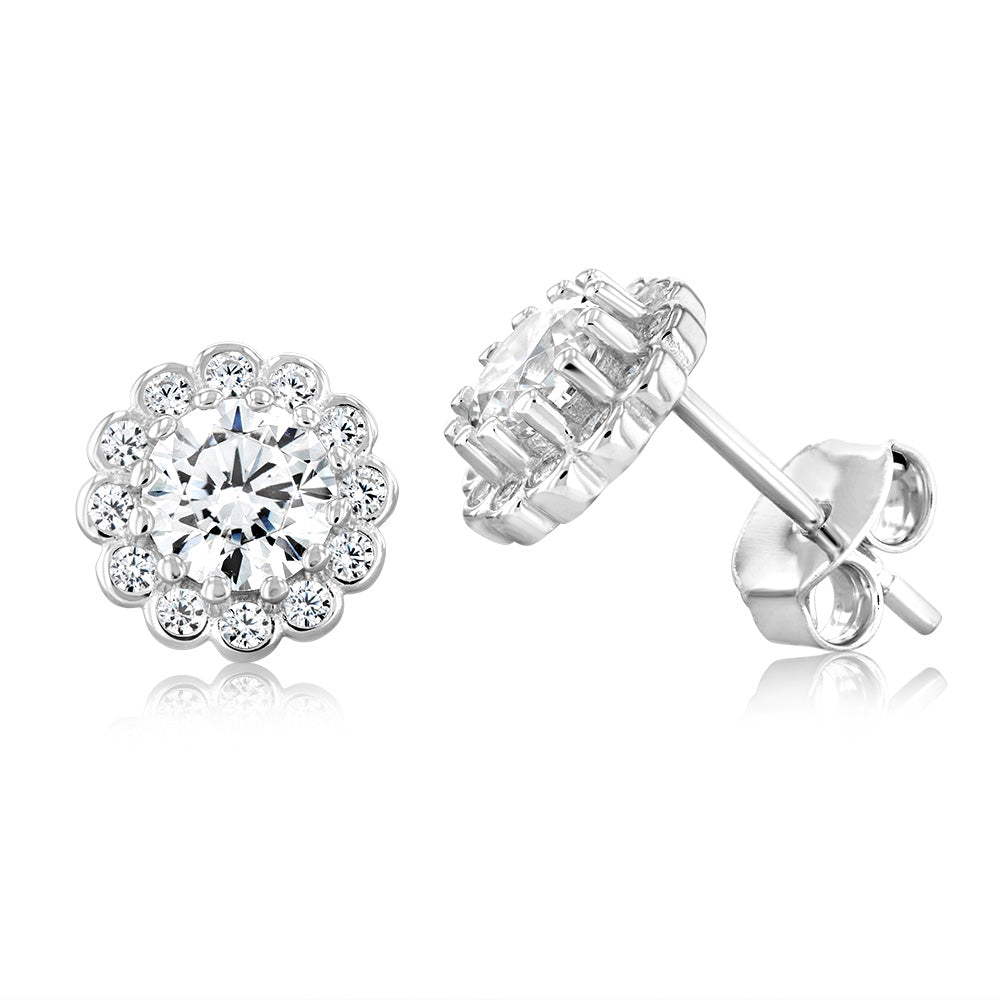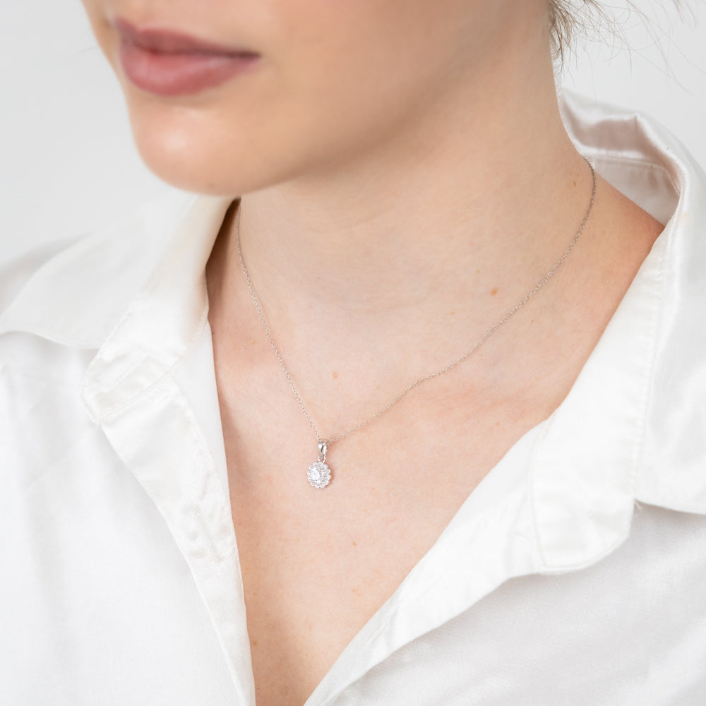 Sterling Silver Cubic Zirconia Halo Pendant And Stud Earrings Set