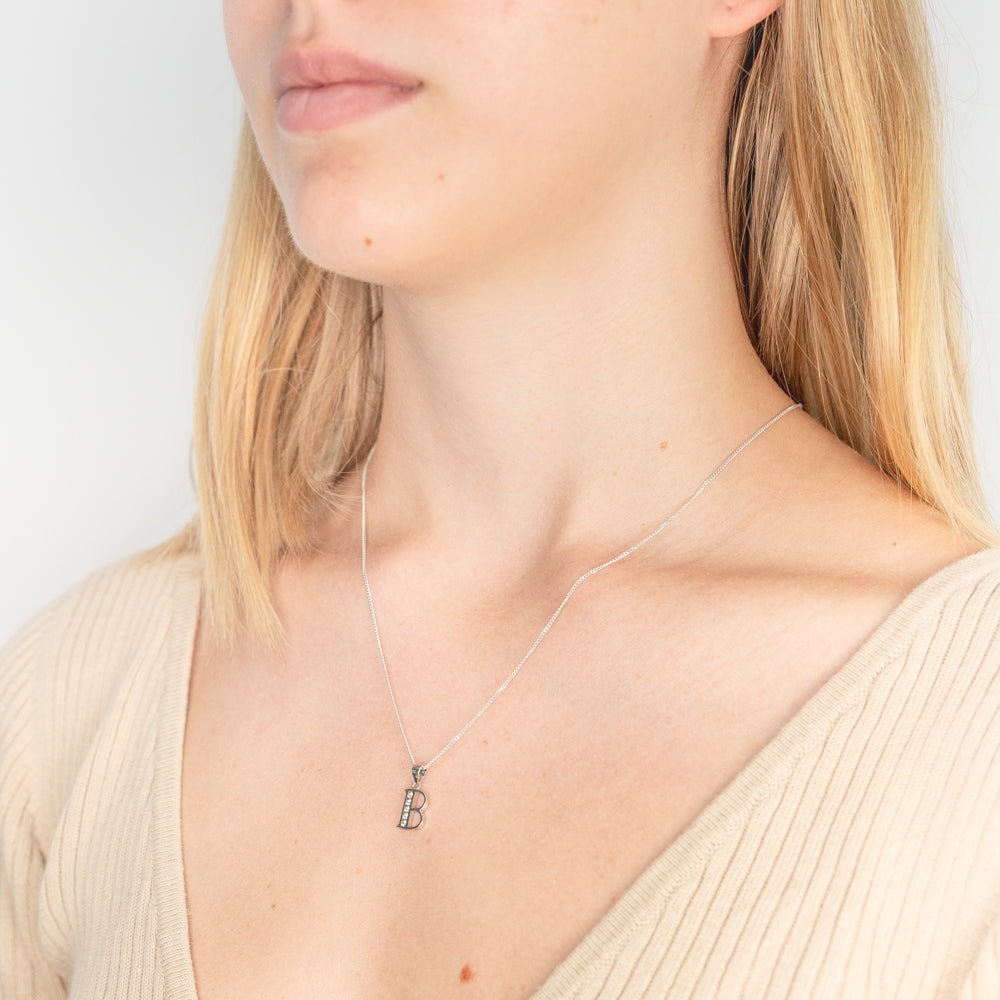 Wear your personality on a chain with this initial 'B' pendant. Crafted in sterling silver and cubic zirconias.