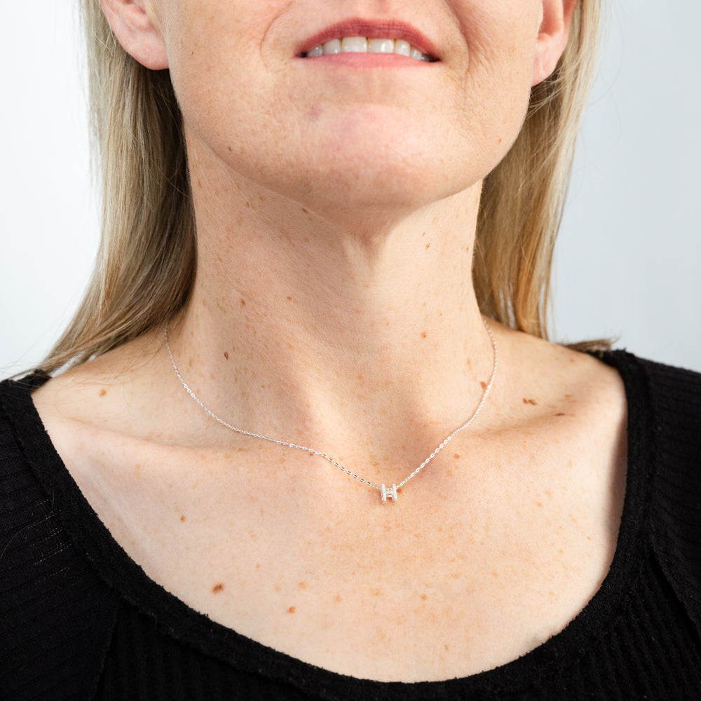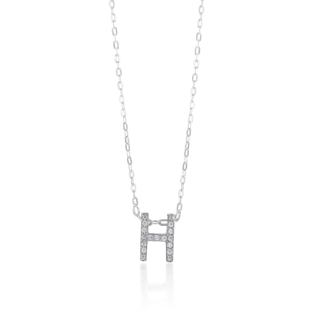 Sterling Silver Cubic Zirconia Initial "H" Pendant on 39+3cm Chain