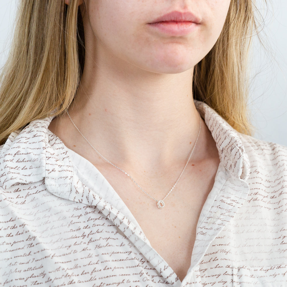 Sterling Silver Cubic Zirconia Initial "O" Pendant On 39+3cm Chain