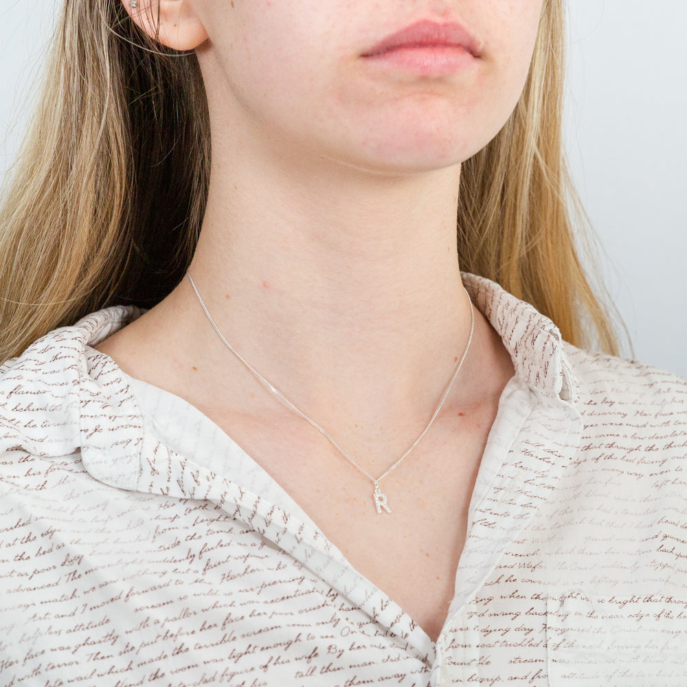 Sterling Silver Cubic Zirconia Initial "R" Pendant