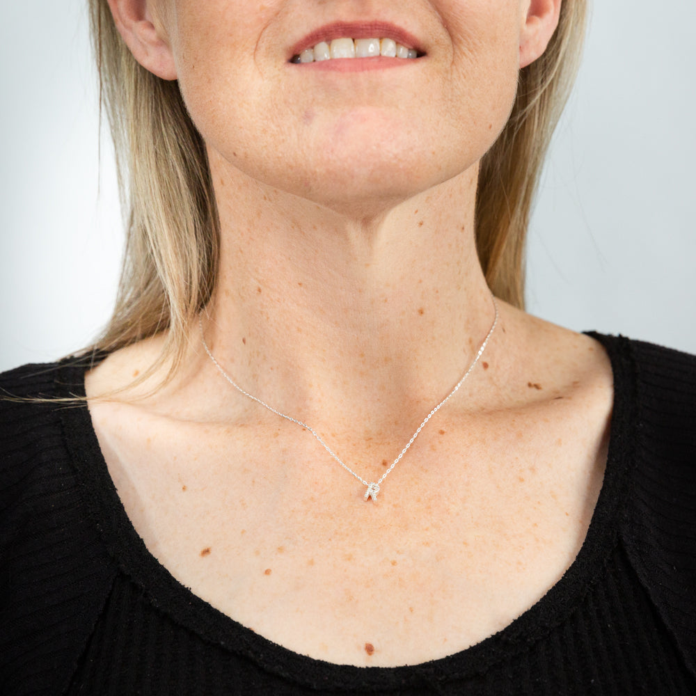 Sterling Silver Cubic Zirconia Initial "R" Pendant on 39+3cm Chain