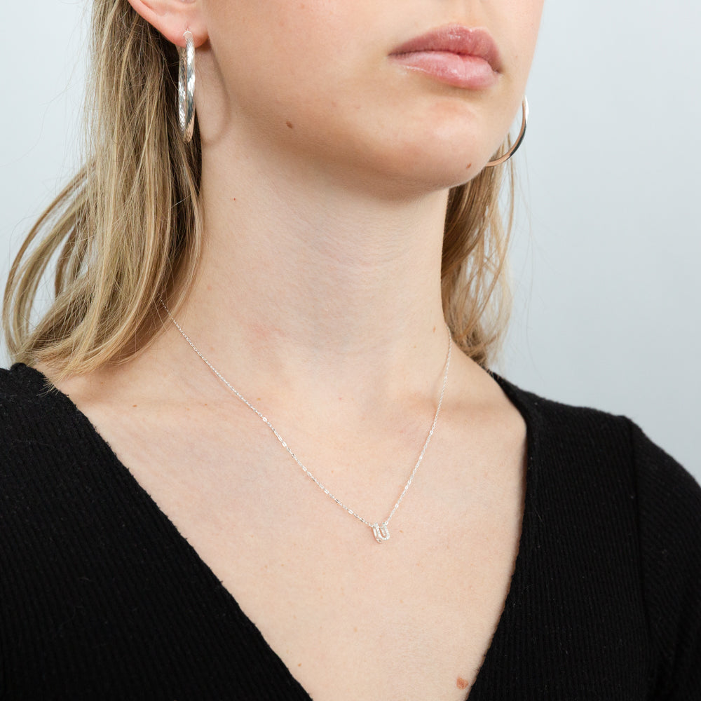 Sterling Silver Cubic Zirconia Initial "U" Pendant On 39+3cm Chain