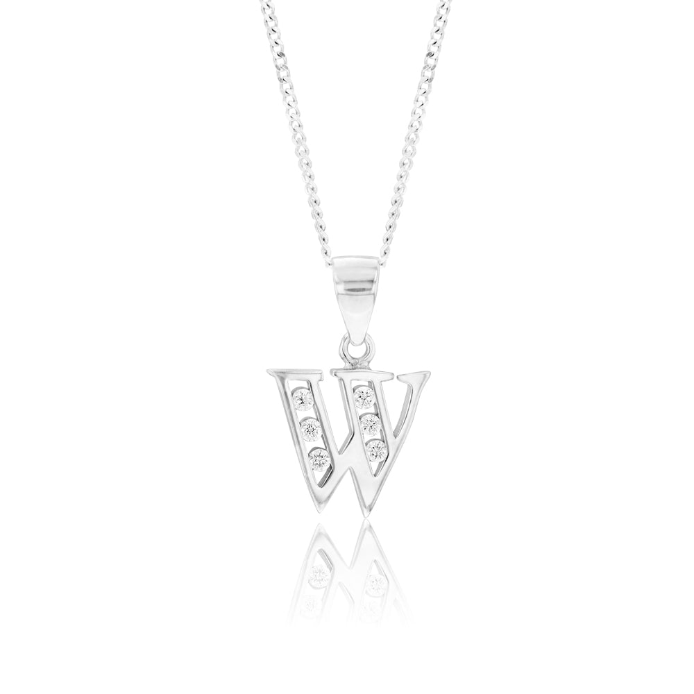 Sterling Silver Cubic Zirconia Initial "W" Pendant