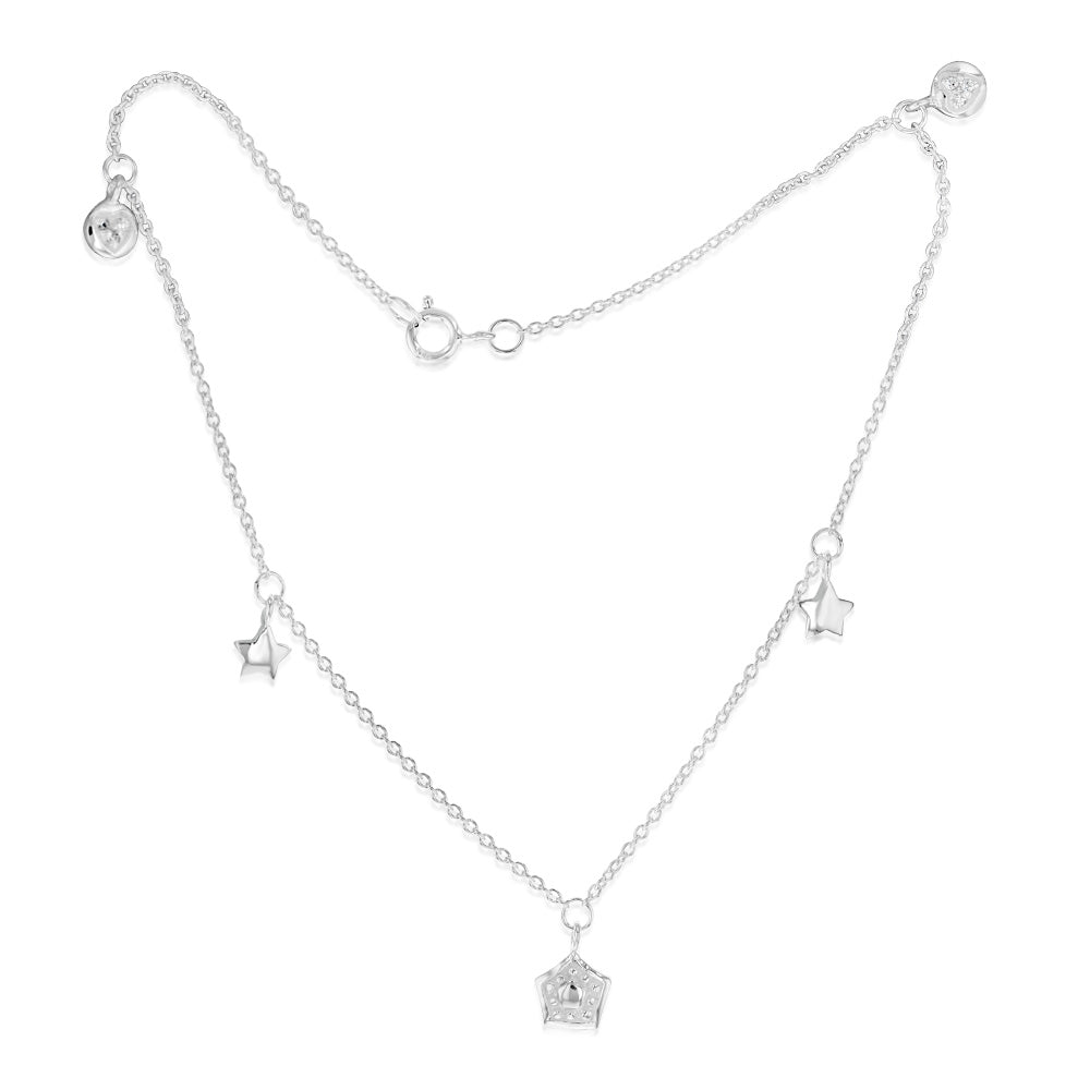 Sterling Silver Cubic Zirconia Leaf And Star Charm 25.4cm Anklet