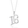 Sterling Silver Cubic Zirconia On Number "16" Pendant